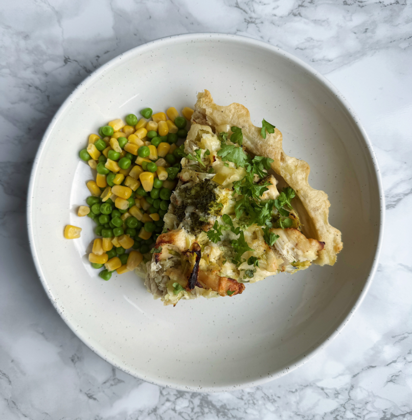 Sprinkle with chopped parsley before serving with the sweetcorn and peas.